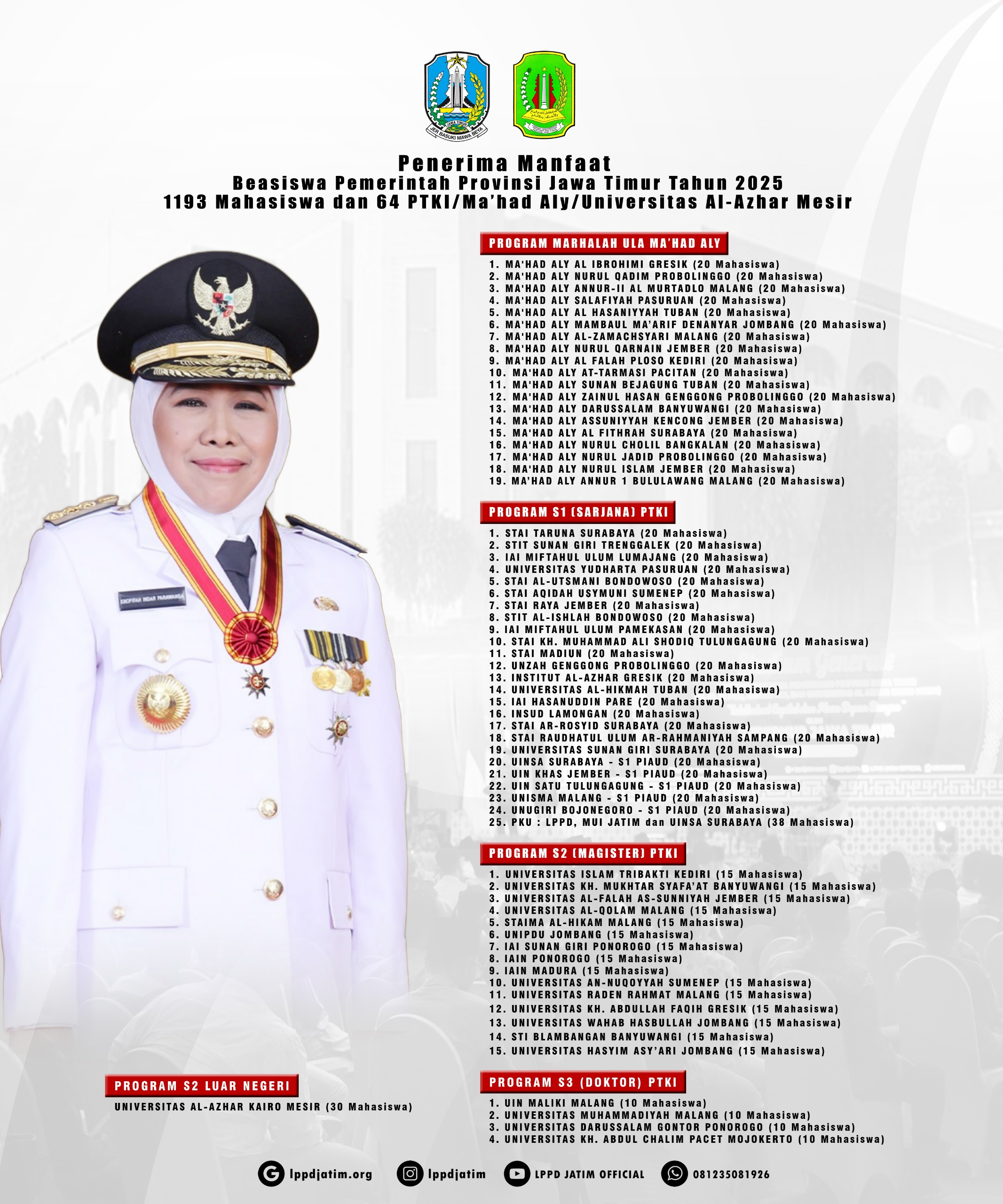 Penerima Manfaat Beasiswa Pemerintah Provinsi Jawa Timur Mulai Tahun 2019 Sampai Sekarang